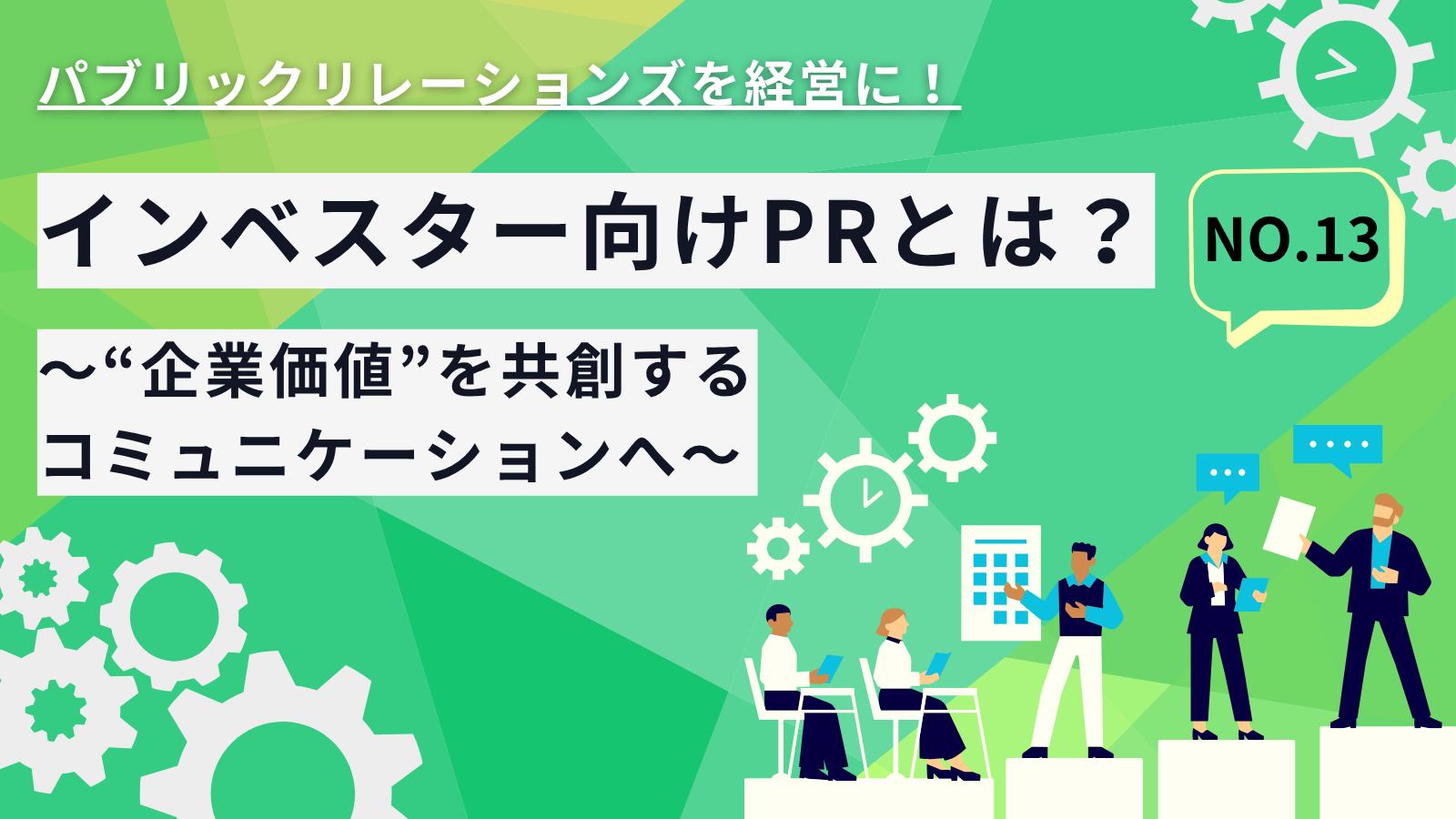 連載コラム「パブリックリレーションズを経営に!」第13回は、インベスター向けPRとは? 〜“企業価値”を共創するコミュニケーションへ〜というテーマでお送りいたします。広報![]()