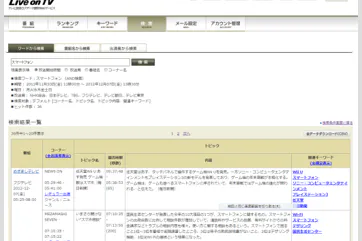 キーワード、TV番組名、出演者名から過去の露出状況を遡って検索できます。