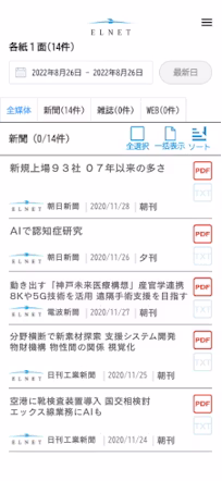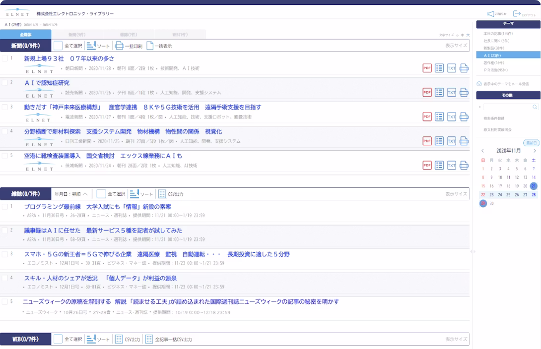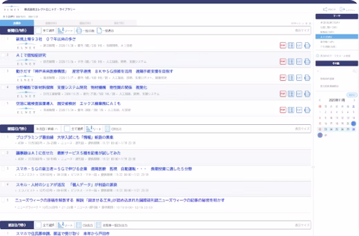 ELNETでは、各メディアのクリッピングやデータベース検索、調査など
