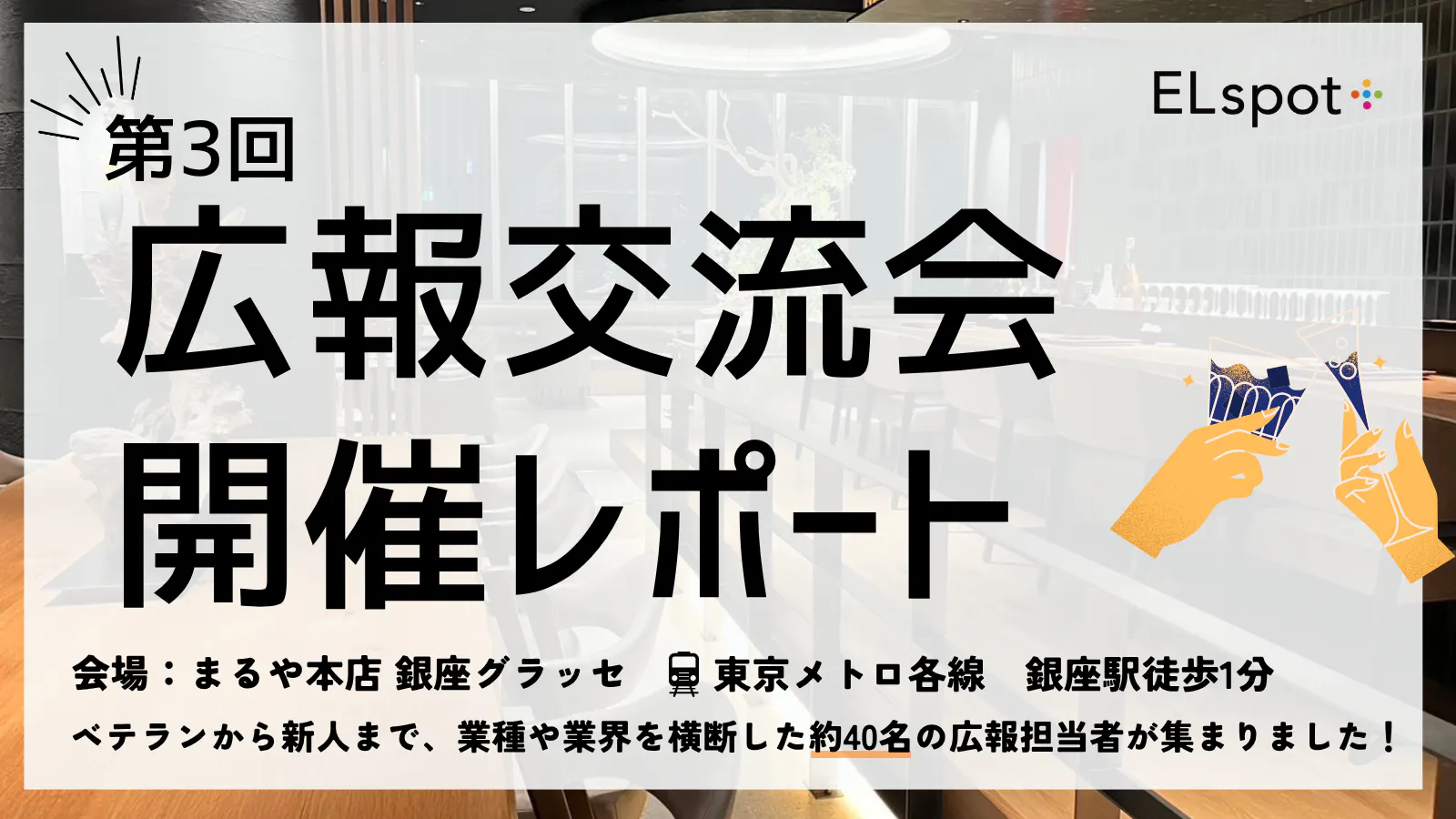 そこで、今月のELspot+では、広報担当者同士が気軽に交流し、率直な意見交換ができる「広報交流会」を開催しました。