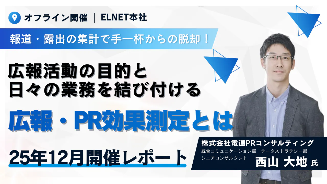 【ELspot+】 『報道・露出の集計で手一杯からの脱却! ~広報活動の目的と日々の業務を結び付ける広報・PR効果測定とは~』