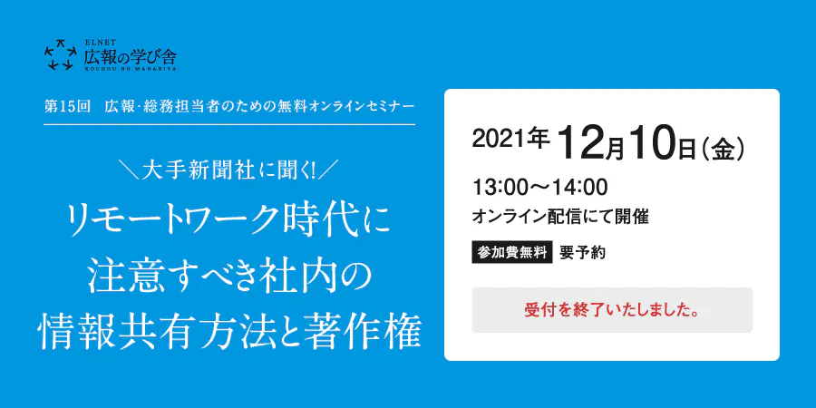 今回のセミナーでは、朝日新聞社の山下敏永氏をお迎えし、リモートワークの今だからこそ活用したい情報源と情報共有の際の留意点についてお話いただきます。